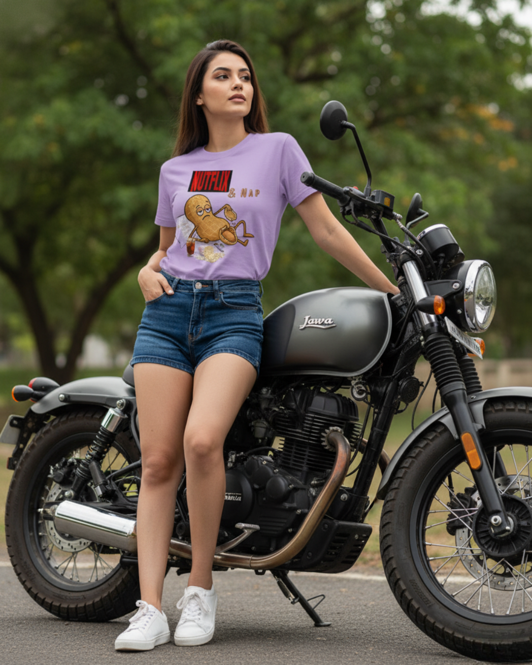 Nutflix & Nap Women’s Classic Crew Neck T-Shirt – Funny Cartoon Graphic Cotton Tee for Relaxed Casual Style