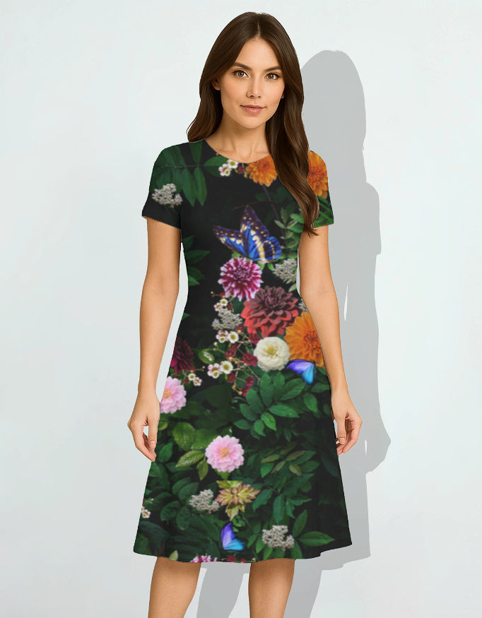 Wildflower Garden Women’s Crew Neck T-Shirt – Botanical Floral Print Cotton Tee