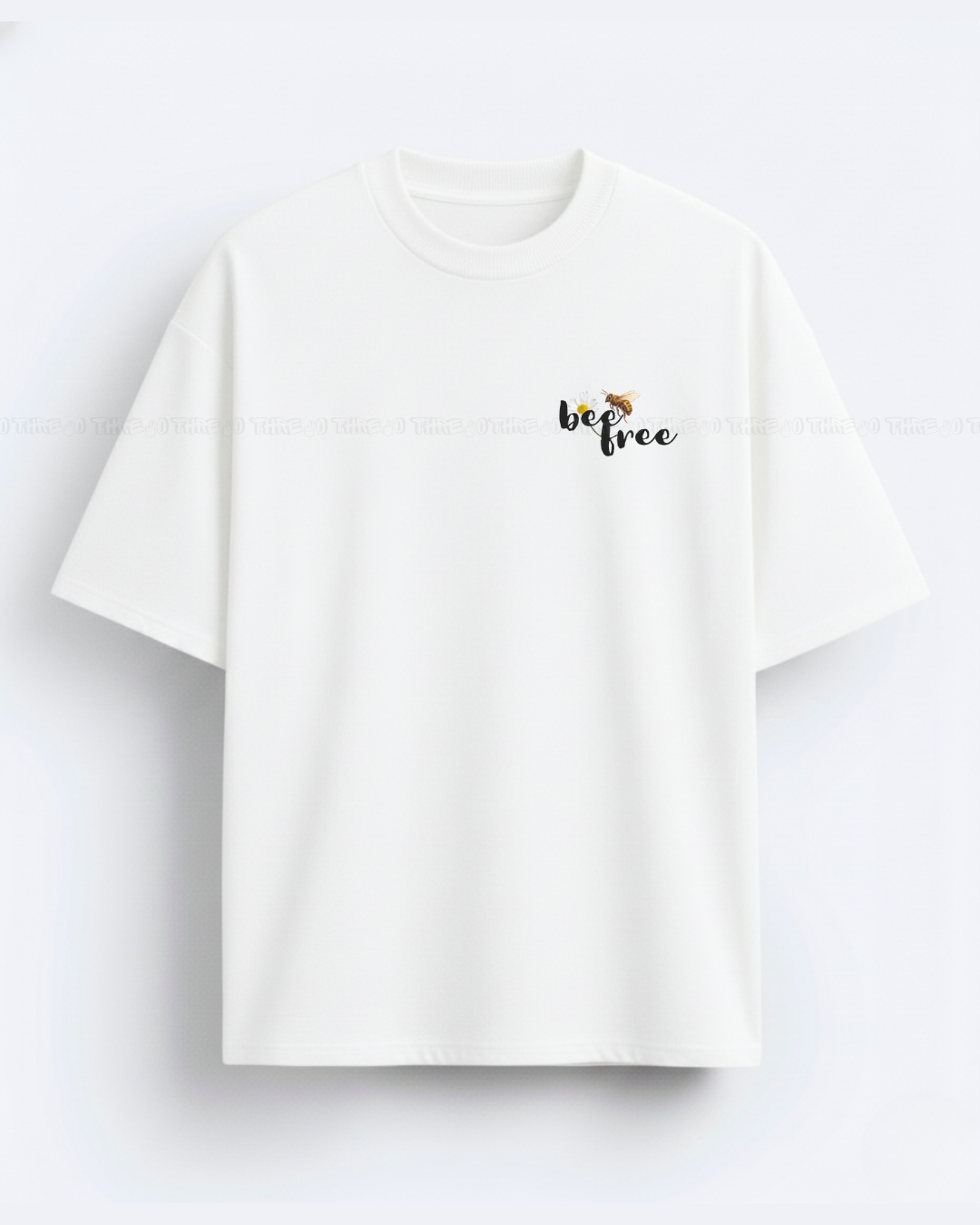 Bee Free Women’s Oversized T-Shirt – Minimal Graphic Tee with Cute Bee Print & Positive Vibes